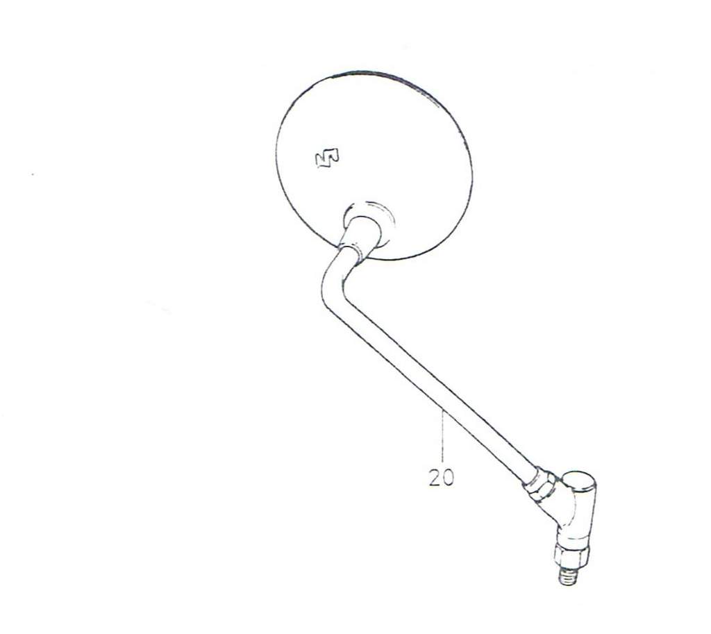 The mirrors for the M, A and B models had a stepped shaft as seen to the right. The beauty of this design of course is that there is only one part number (56500-28600) for both sides of the handlebars - its surprising this was not more commonly offered elsewhere.