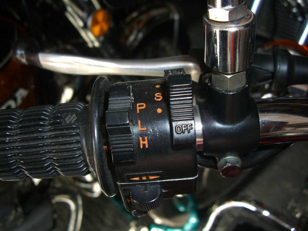 The headlamps included the city driving bulb mounted in the side of the main reflector and the left handlebar had a spring loaded 'pass' switch