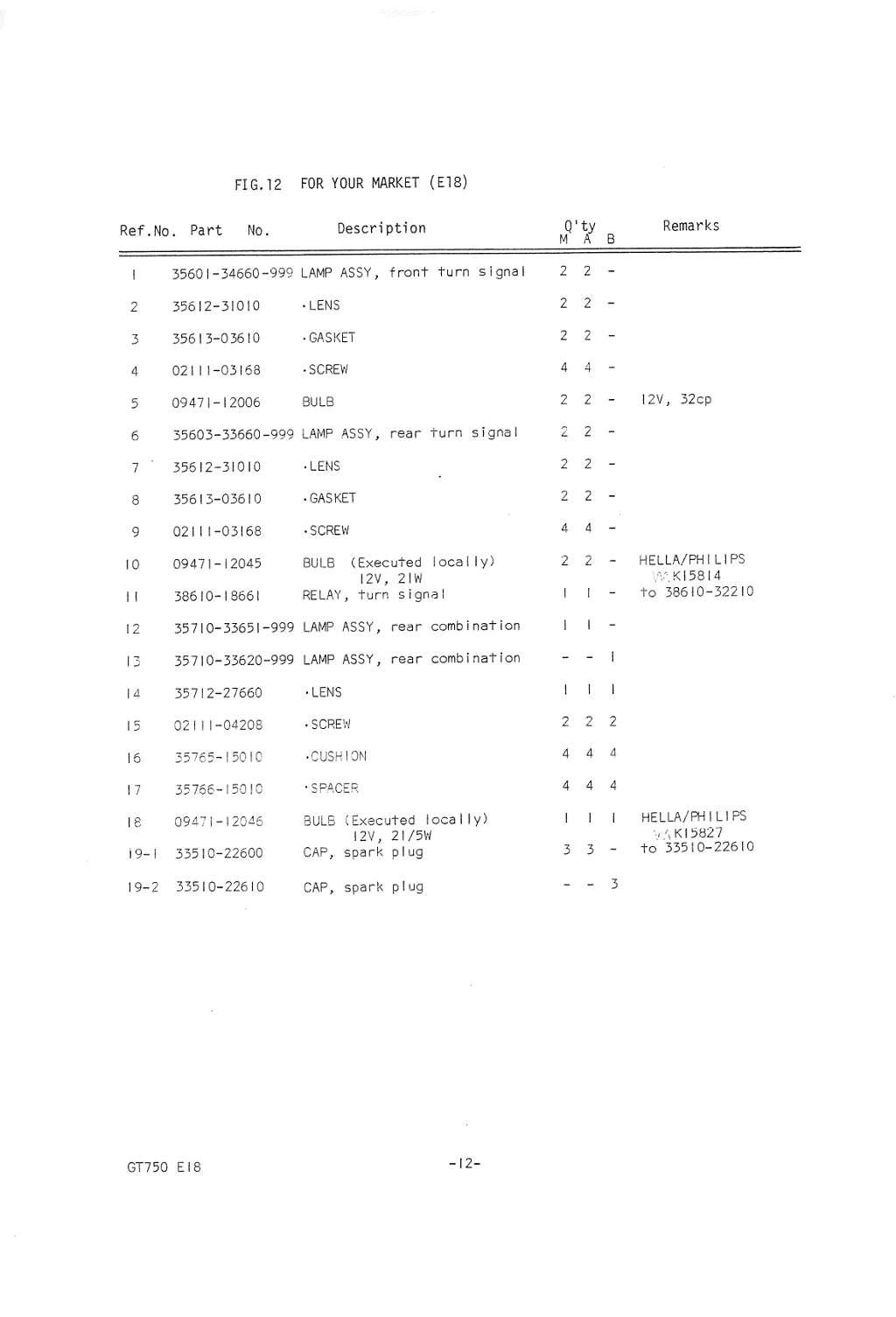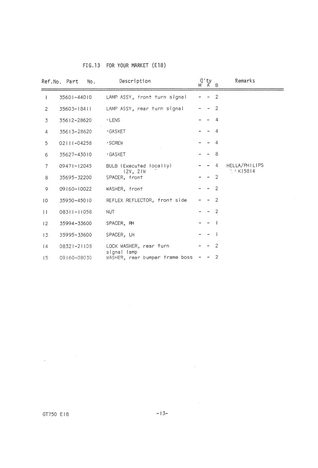 For the M and A models, the turn signals are similar to the general export model, except there is no reflector and no hole drilled to accept one (country specific part number 35601-34660 for the front, and 35603-33660 for the rear).