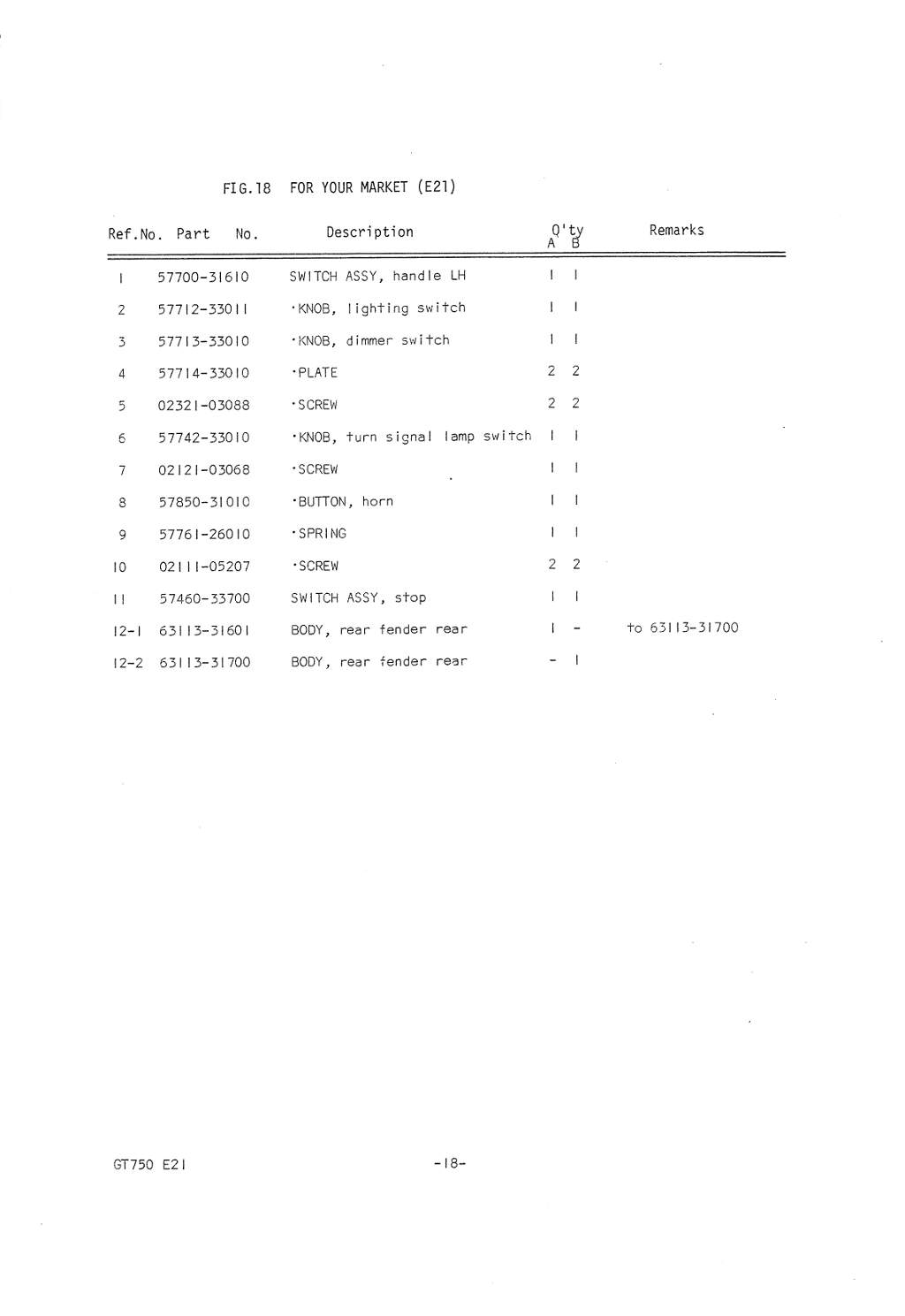 Note for Spain specifically, due to import restrictions K (and possibly J) GT750's were remodelled in France and then rebadged as French origin under the Roca cafe version - see the Specials section for photos.