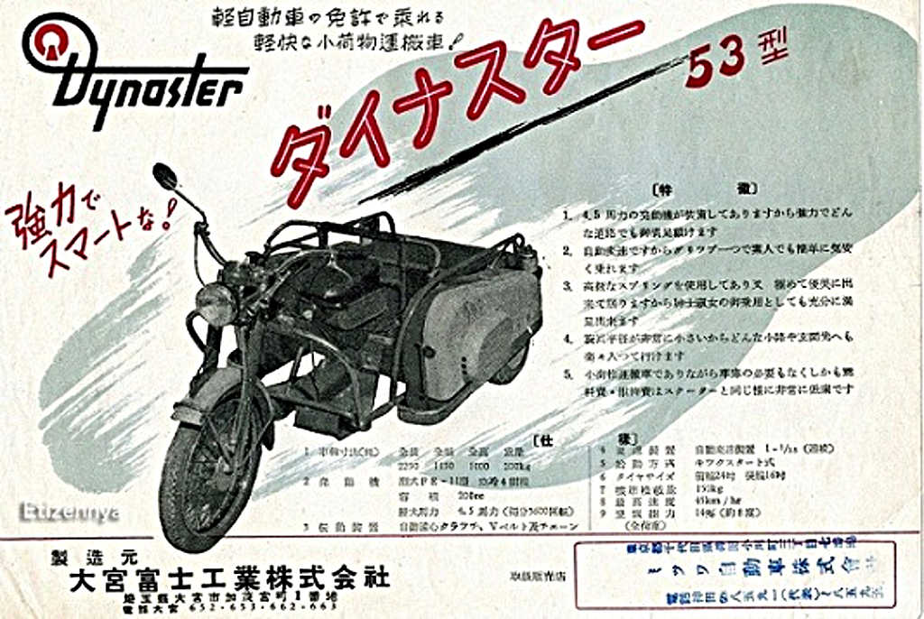 Fuji Heavy Industries also produced a three wheeled utility vehicle called the Dynaster (ダイナスター). between at least 1953 and 1955.